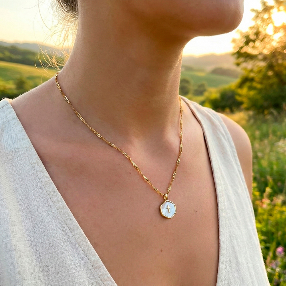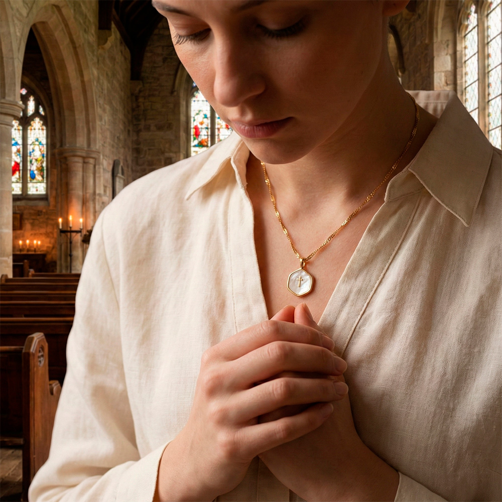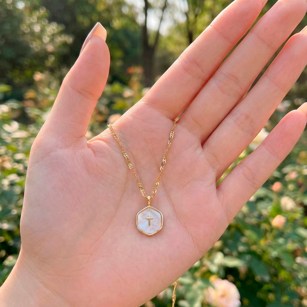 Every Faith Wings necklace —a mother-of-pearl pendant with golden cross—reminds us faith lifts us through storms.